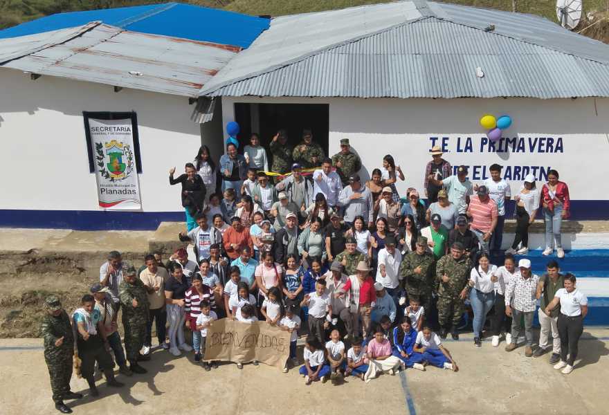 En una acción articulada entre los soldados de la Sexta Brigada del Ejército Nacional, el Batallón de Apoyo de Acción Integral y Desarrollo N.º 5 y la Alcaldía de Planadas, hoy la Institución Educativa La Primavera tiene un nuevo salón de clases, en la vereda El Jardín, el cual permitirá que más de 38 niños, niñas y adolescentes y sus familias continúen su proceso de formación en condiciones dignas, y que nuevas generaciones encuentren un espacio seguro y adecuado para prepararse y construir su futuro.
